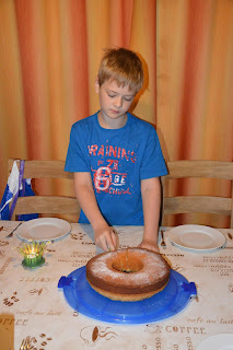 Letztes Jahr hatte er noch einen Geburtstagzug aus Holz mit einer "10" dran und 10 Kerzen. Aber bei dem Zug sind nur die Geburtstage 1 bis 10 vorgesehen. Außerdem ist er ja auch kein richtiges Kind mehr sondern eher "Vor-Jugendlicher". ;-)